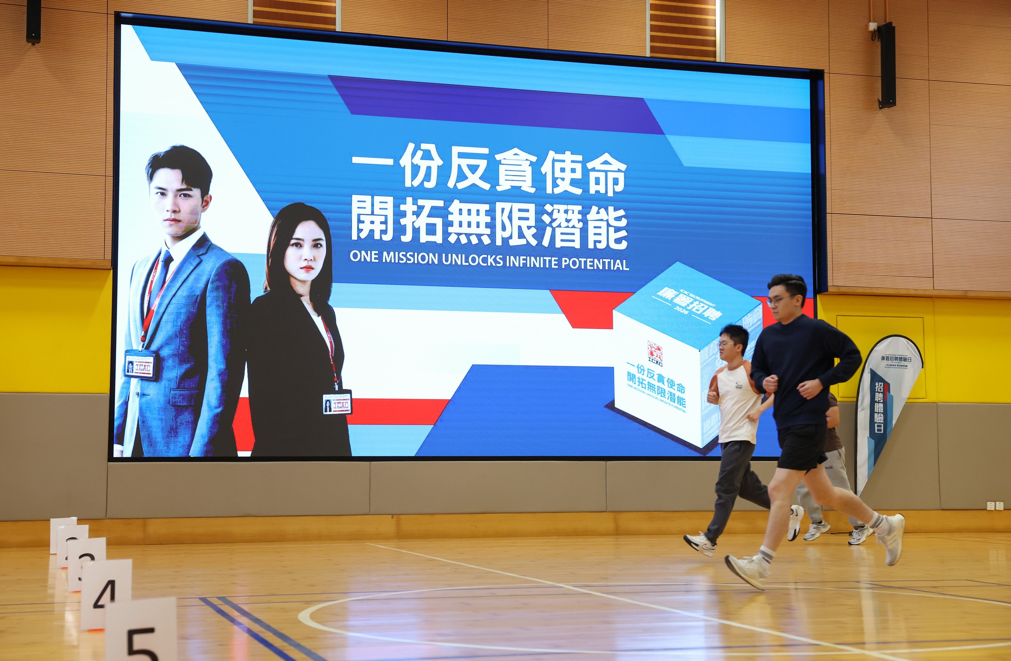 「廉署招聘體驗日2026」反應熱烈,共約1,000個參加名額已滿。是次活動透過講座、行動示範、模擬工作體驗、個案分析、互動遊戲以及設施導賞等環節,讓投考者親身體驗廉署結合專業執法、誠信教育、制度預防及全球反貪的全方位反貪策略。參加者亦可即場參與入職體能測試,通過測試者即獲認可符合本年招聘的體能要求。