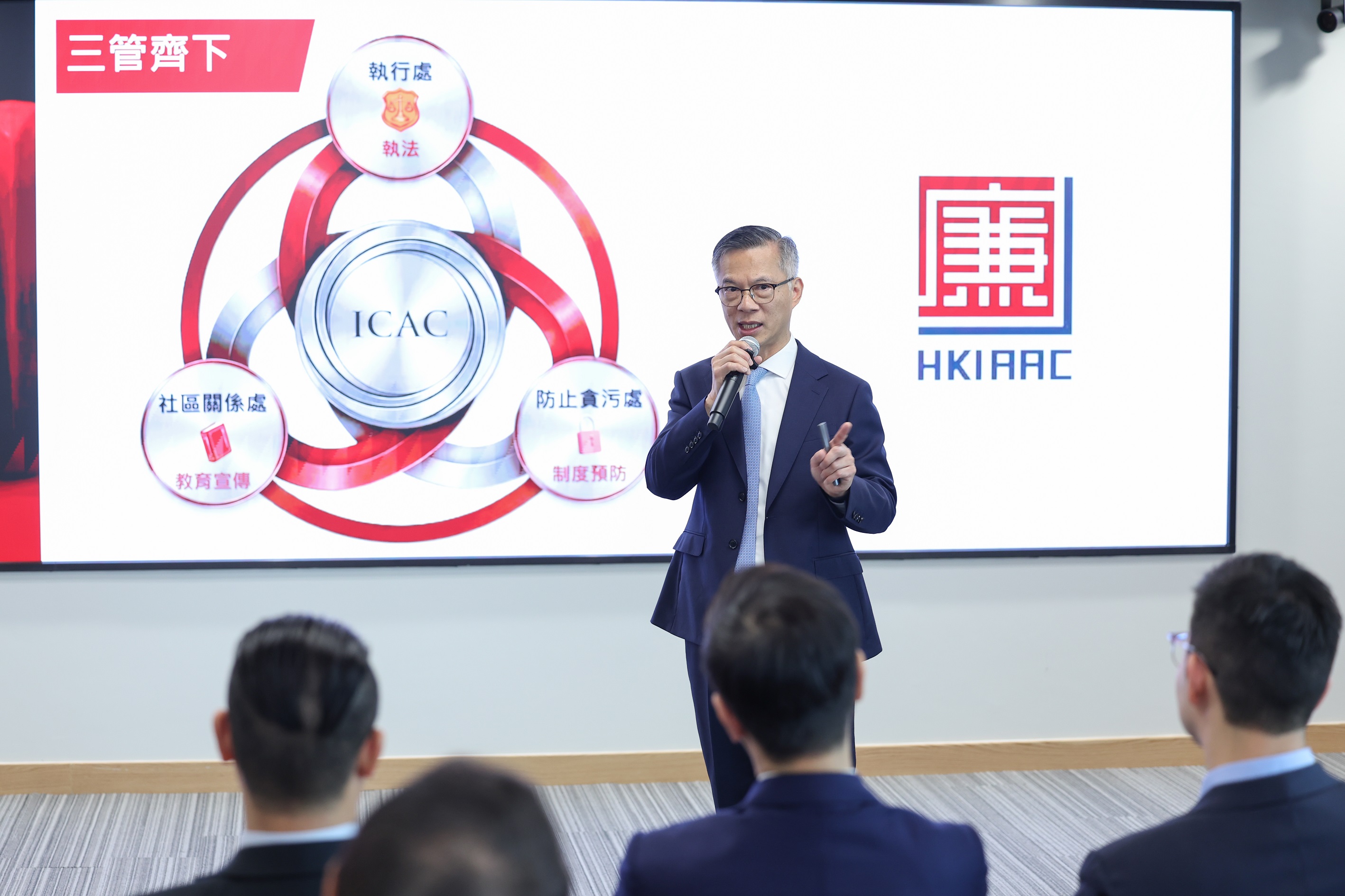 此外,副廉政專員兼執行處首長丘樹春亦向到訪議員講解執行處的工作、機遇和挑戰,以及近年不同界別的重大貪污案件及大型執法行動等。